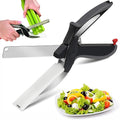 2 in 1 multi-functional smart kitchen cutter, built-in cutting board, for easy food and vegetable slicing.